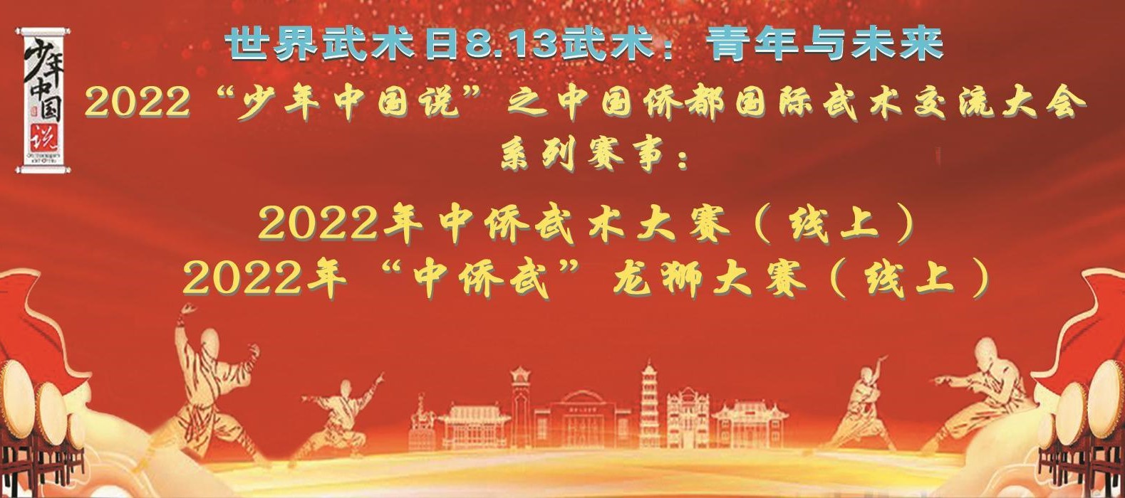 在2022年世界武术日期间,举办“少年中国说”之中国侨都国际武术交流大会系列活动赛事:中侨武术大赛、“中侨武”龙狮大赛,积极发展武术龙狮项目,大力传播中国优秀传统文化。